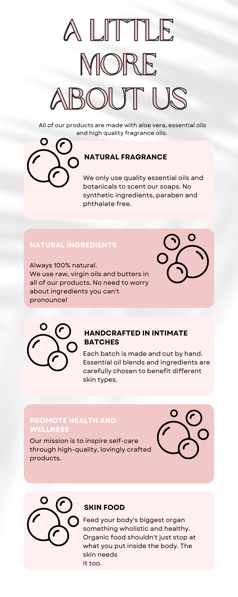 Discover an uncomplicated combination of natural, skin-loving ingredients in this nourishing soap bar. With each and every wash you'll be left with a gentle, moisturizing cleanse. Enjoy a luxurious skincare experience made with natural essential oil’s without any common irritants and harsh chemicals of commercial brand soaps.