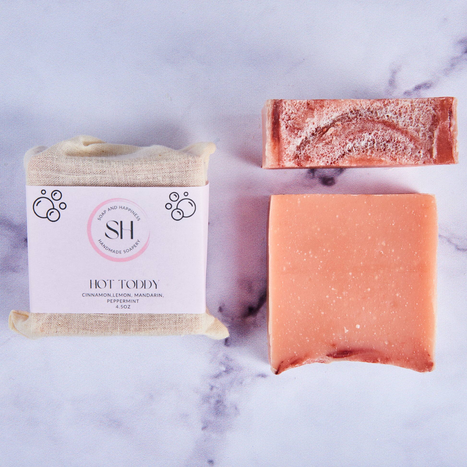 Calm your senses with Hot Toddy! Our luxurious soap, enriched with cinnamon essential oil, lemon, mandarin and peppermint, will enliven your skin and senses with every wash, leaving you refreshed and invigorated all day. Experience the power of nature with Hot Toddy!