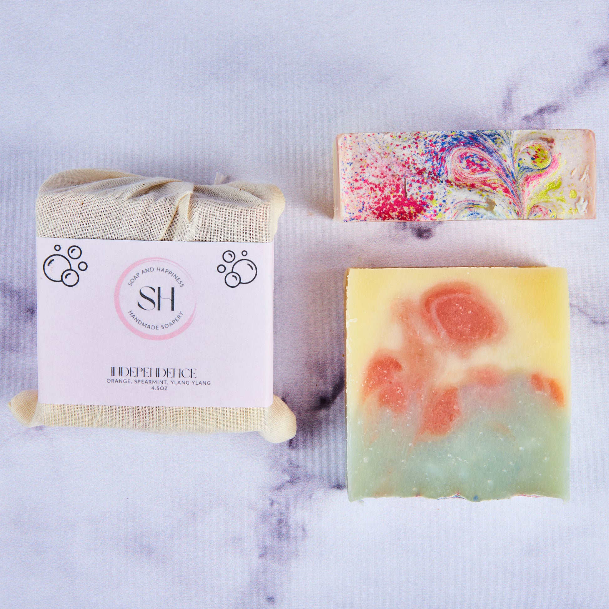 Discover the joy of Independence with just one use of this handmade soap! An expert blend of sweet orange, spearmint, and ylang ylang essential oils creates a refreshing scent and luxurious lather perfect to celebrate the fourth. Feel free and show your spirit with Independence today!