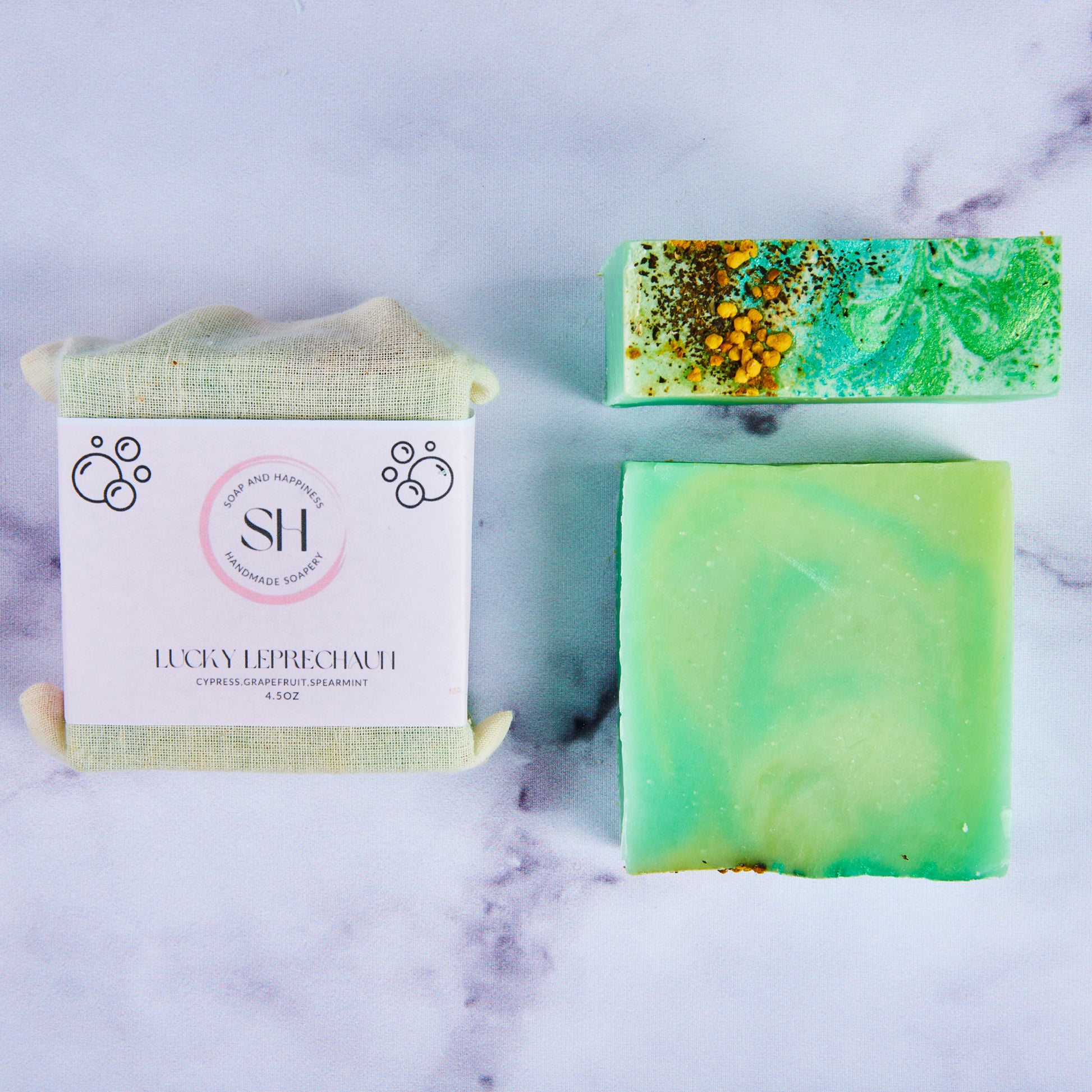 Lucky Leprechaun is a premium soap crafted with spearmint, cypress, and grapefruit essential oils. Its citrus-minty fragrance helps invigorate and energize the senses, while its triple-infused oil blend helps to soothe and hydrate skin.