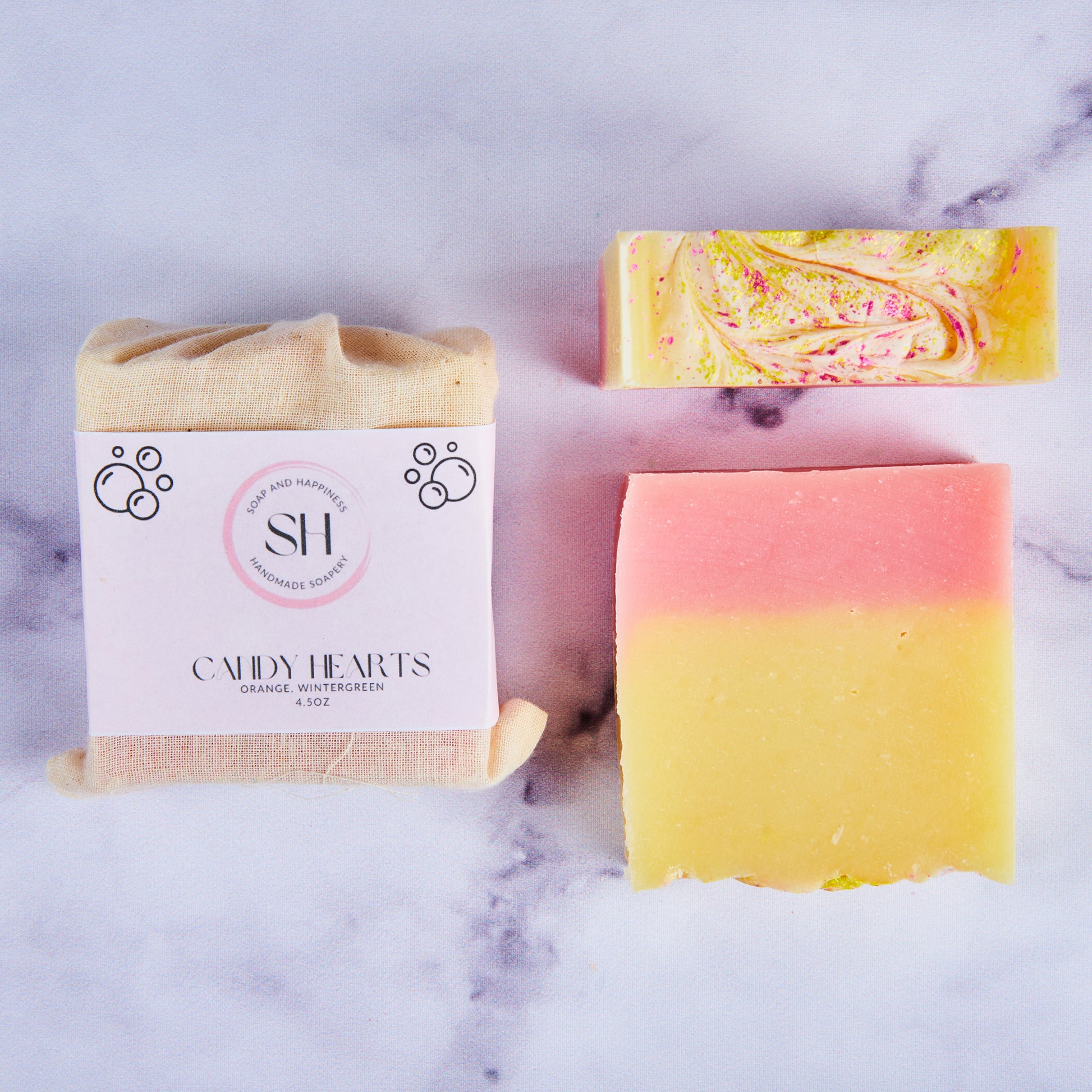 Candy Hearts is a seasonal soap bar made with delightfully scented wintergreen and orange essential oils, perfect for a special occasion or simply indulging your senses. Make each moment a celebration and sweeten your life today!
