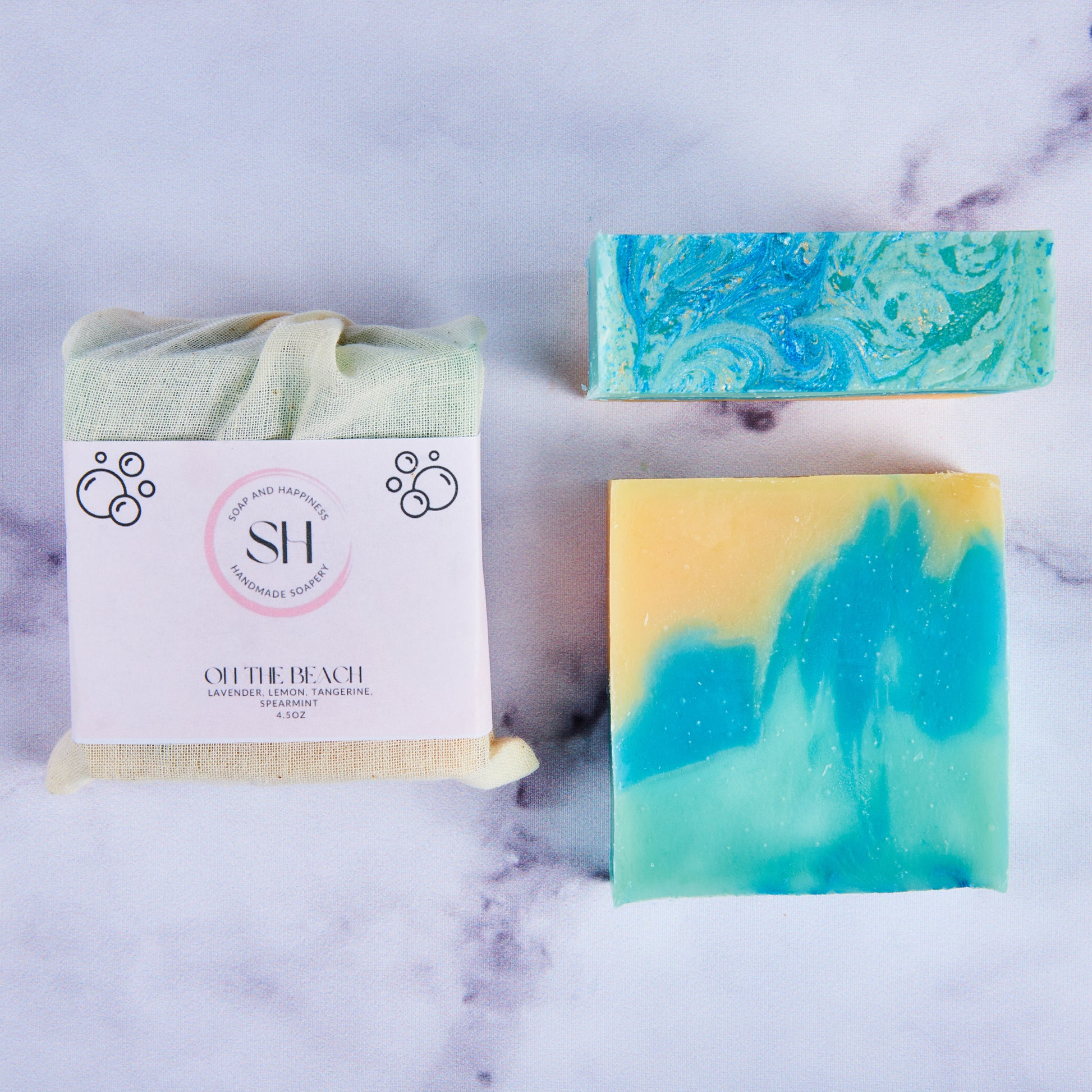 Experience the freshness of a beach vacation with On The Beach, our handmade soap made with Lavender, Lemon, Spearmint, and Tangerine essential oils. Feel the breeze as you pamper your skin with essential oils known for their calming and soothing effects. Revel in the beauty of a summer escape!