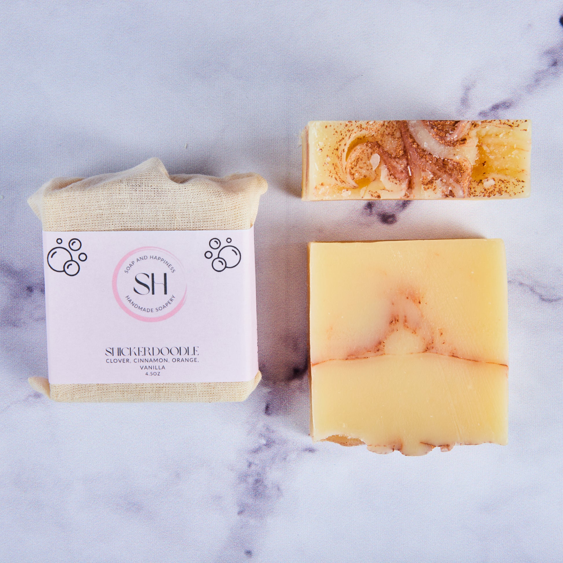 This Snickerdoodle soap is sure to excite your senses! Its zesty orange, warm cinnamon, spicy clove, and sweet vanilla aromas transport you to a world of comfort and joy, while its bubbly lather washes away your worries and cares. Indulge in a rich and yummy, sensory experience - won't you?