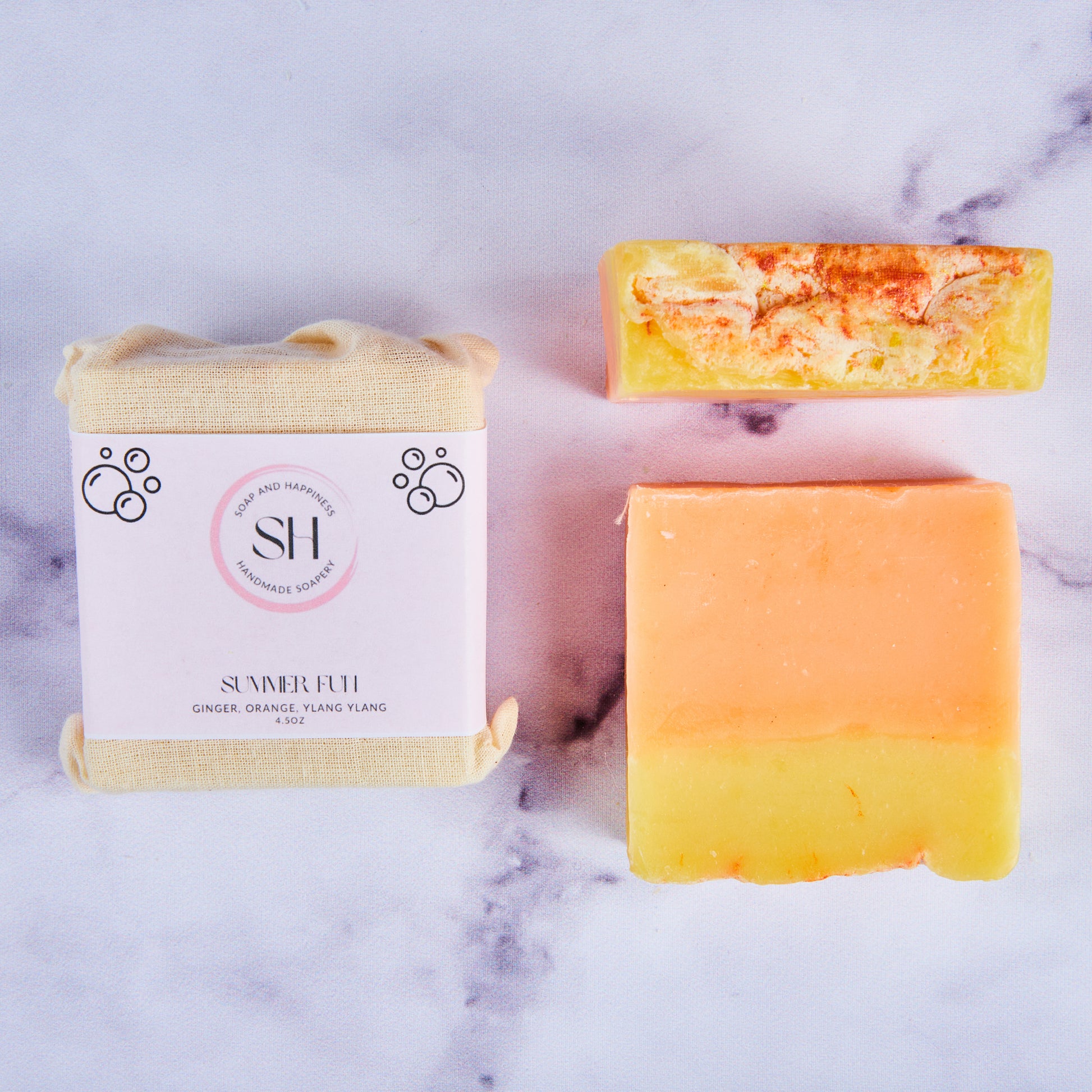 This natural soap is a one-of-a-kind summertime experience. Ylang ylang oil is known for its calming and soothing effects, ginger for its stimulating and uplifting aroma, and sweet orange for its cheerful and refreshing scent. Enjoy a cooling and invigorating summertime soap with this luxurious blend.